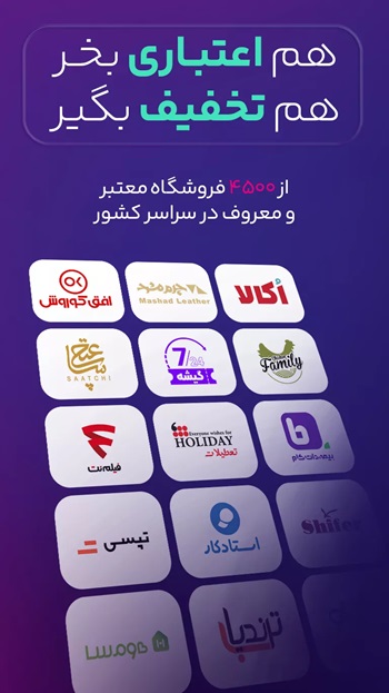 و به راحتی فقط در ۱۰ دقیقه اعتبار بگیرید و از فروشگاههای موجود در اپ خرید کنید.